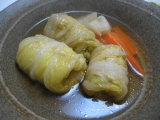 こんにちはいや今日はマジで寒かった九州方面の空が真っ暗で今にも雪が降りそうな気配明日は、完璧に雪かなあ朝の散歩辛いロール白菜!!中身は豚スライス(笑)白身フライ(揚げるだけ)1枚20円だもの油断してゆですぎたボロボロになって離乳食状… 2013/02/07
