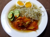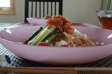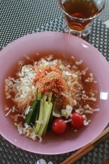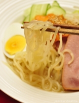 ぴょんぴょん舎の盛岡冷麺を暑過ぎる夏にぴったりかなぁと食べてみました↑↑↑ハムなど入れてもいいんだろうけど、冷蔵庫みたら無くて(唖然) お庭で育てているミニトマトを添えたり、野菜を添えて野菜たっぷり盛岡冷麺でいただきますミニトマトときゅうりとみじんぎりの葱と…セットのキムチと胡麻を盛り… 2013/07/27