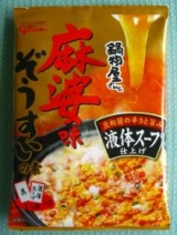 グリコ 鍋物屋さんの 麻婆味ぞうすいの素 (2袋入) 35円 とってもお安く売っていたので買ってみました(すでに廃盤のようです)作り方を見ると、鍋で作り、最後に卵を入れることになっていますが小丼にご飯などを入れて、電子レンジで作りました卵も入れませんでした 優しい味が鍋のあとの… 2011/10/01
