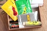 七味小袋入り10g、山椒袋入り10g、しその友30g、ミニ缶容器、竹筒容器