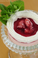 いちごの果汁で作ったムースタイプのレアチーズケーキを