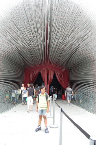 上海万博のイギリス館ですどこも人気のパビリオンは長蛇の列ですおまけに上海の暑さは日本とはくらべようがないほどの暑さですずっと飲み物を飲んでないとたおれそうですイギリス館は、細いアクリル棒の先に世界中から集めた種がひとつひとつ入っているんです内側もとってもきれい外は、すごい迫力ですよ 2010/09/01