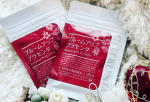 オリーブ油、プラセンタエキス(豚由来)、食用紫菊花粉末、ザクロ花エキス、ハスの花エキス、バラ花ビラ抽出物、桜花エキス/ゼラチン、グリセリン、グリセリン脂肪酸エステル、ミツロウ、ビタミンE