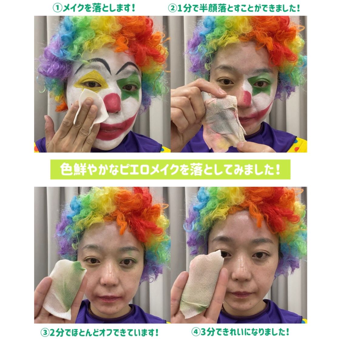 (例)クレンジングウォーターを使って、何分でメイクが落とせるか検証!
