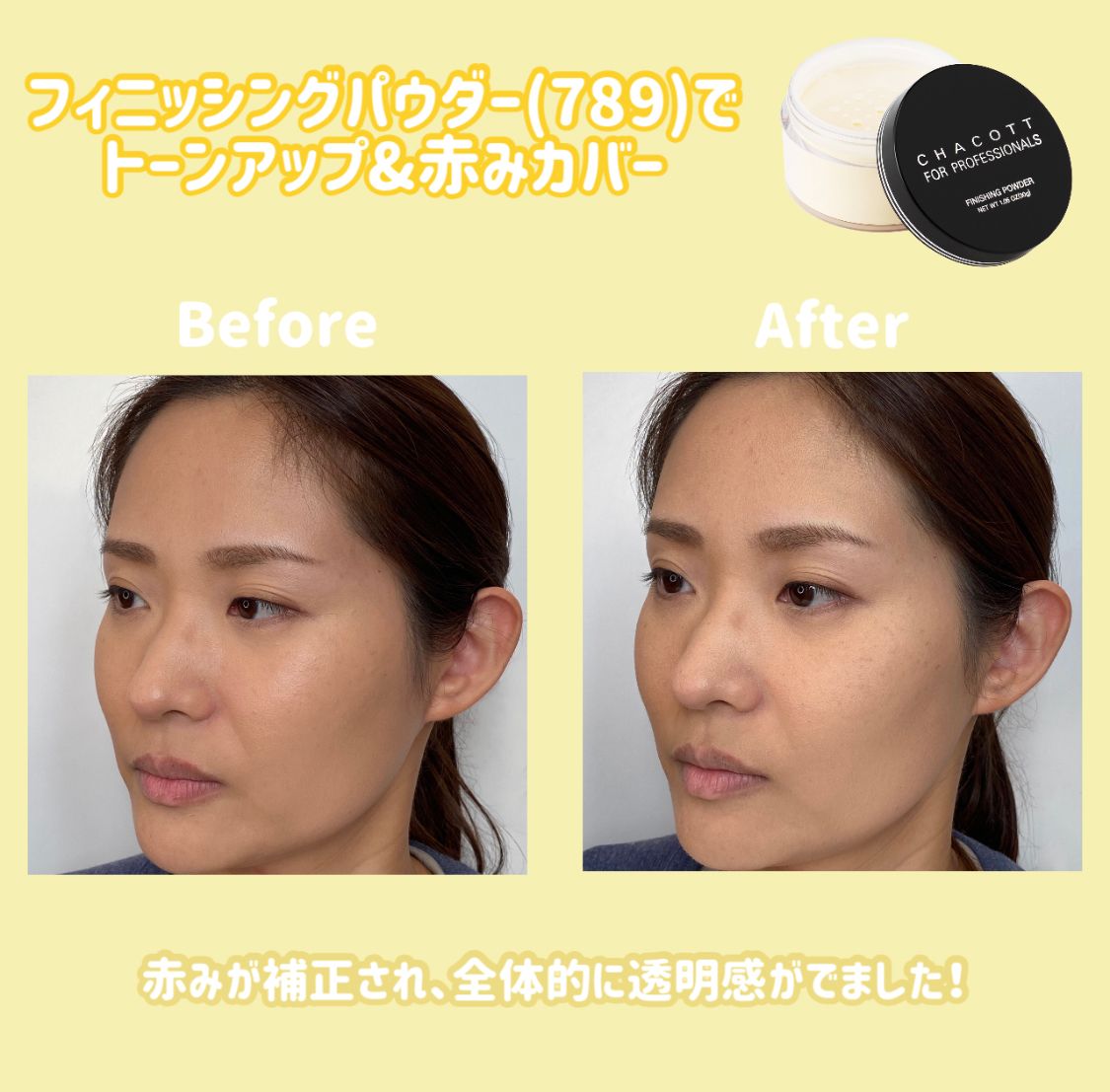※Instagramに投稿する際には #フィニッシングパウダー #フェイスパウダー #ベースメイク #コントロールカラー #赤みカバー #monipla #chacottcosmetics_fan のハッシュタグをつけて投稿してください!