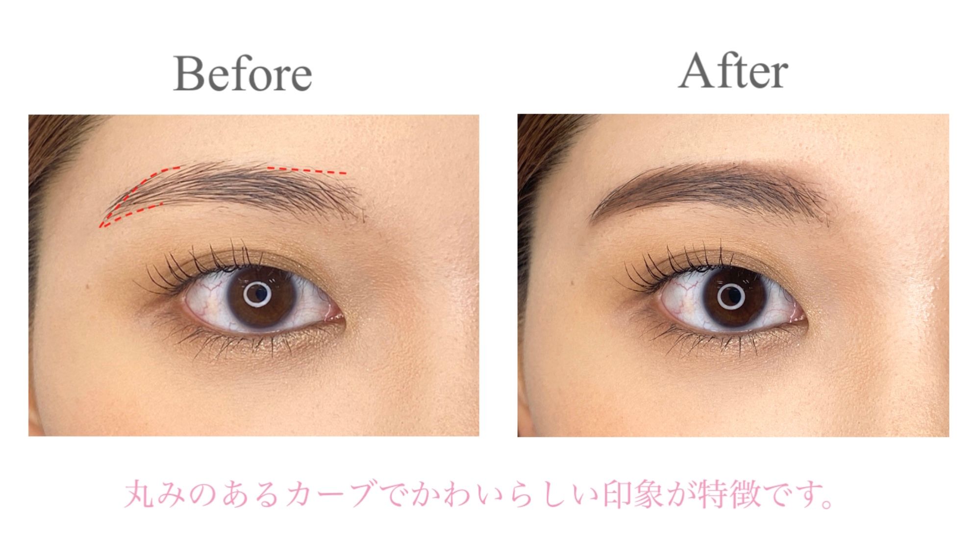 ※眉下はあまり描き足さず、丸みを意識した形にしましょう。