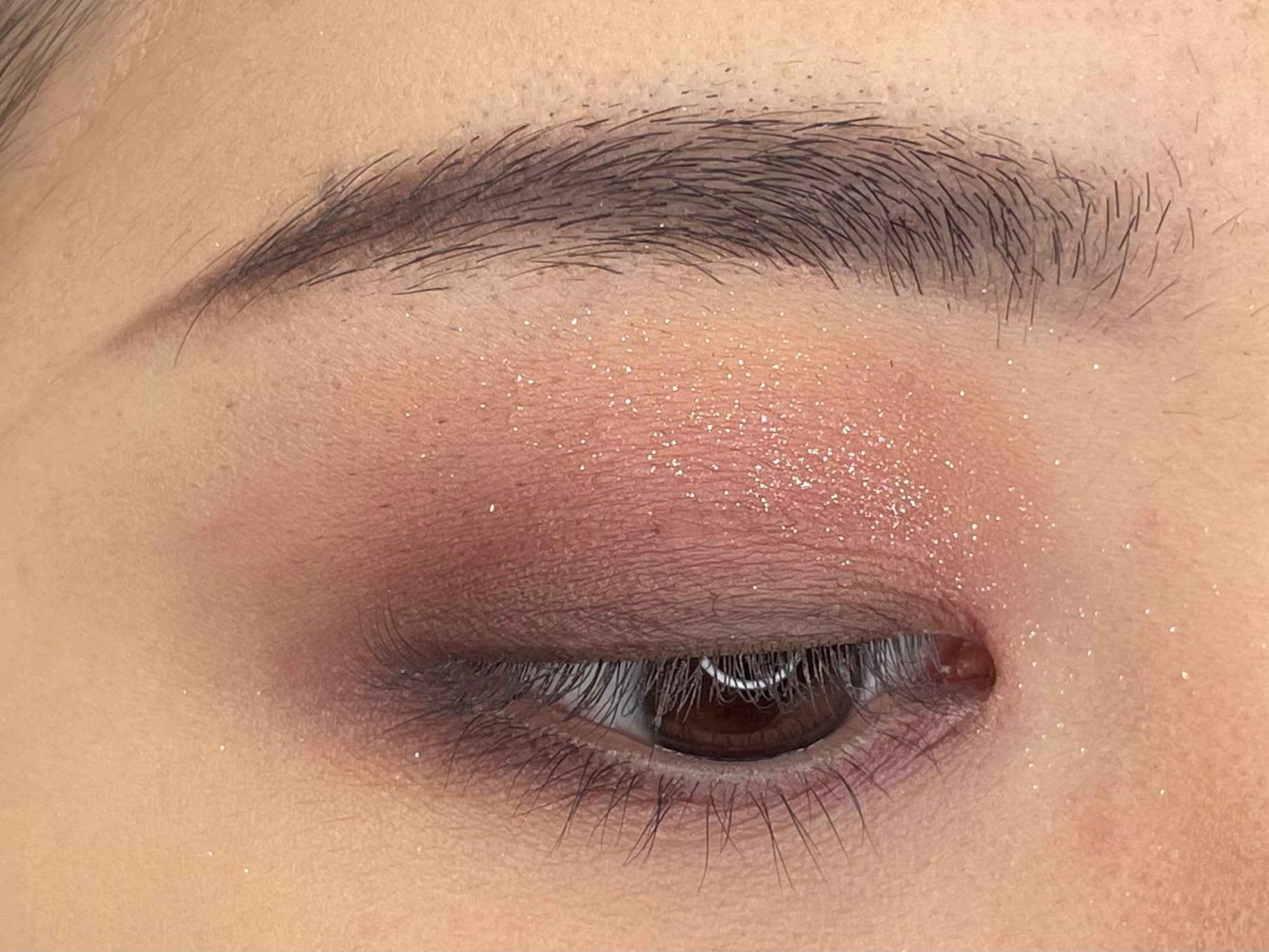 上品なローズ系のカラー。眉にカラーを重ねるとあか抜けた印象に。