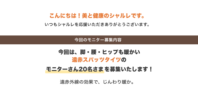 今回はこのシャルレの遠赤スパッツタイツのモニター20名さまを募集いたします。