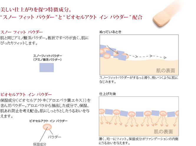 すーっとなめらかにのびて、ぴったり美しくフィット。ひとぬりで手早く簡単に、ムラや粉っぽさのない自然な肌に仕上げられる新感覚のパウダーファンデーション。肌のうるおいを保って、乾燥や紫外線などから肌を守り、しっとりするのにさらっとした心地よさを保ちます。