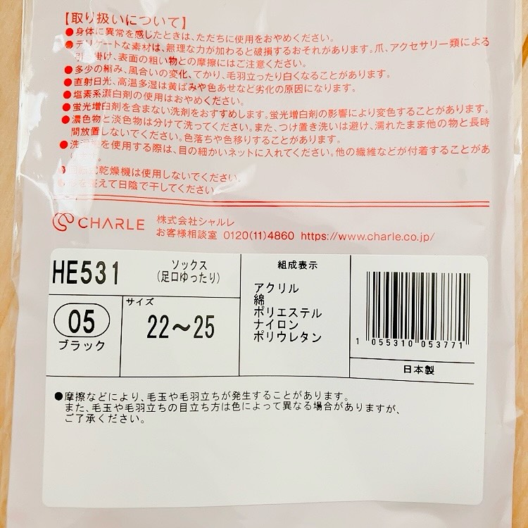 足口は2重のリブ編みで、ゆったりやさしくフィットするソックスです。カラーは日常使いしやすい3色展開。