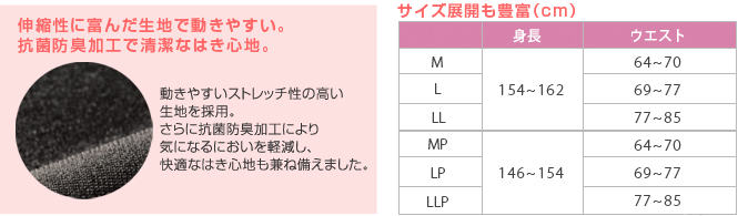 また小柄な方でも着用いただけるよう、サイズもウエスト3段階、