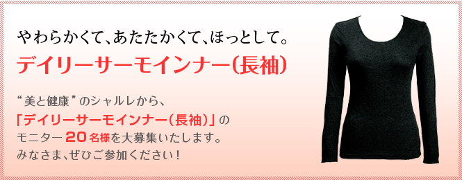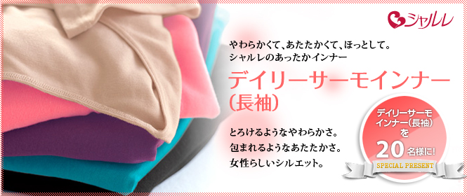 デイリーサーモインナー(長袖)は、創業から30年もの間、女性下着やウエルネス関連製品を研究から販売まで一貫して行うシャルレが開発した冬を快適に過ごすための機能インナーです。