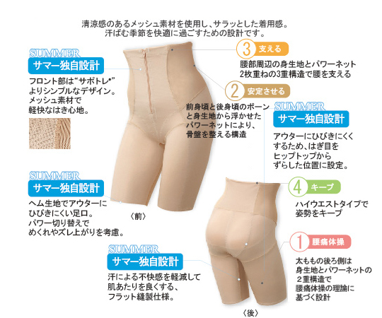 “美と健康のシャルレ”の自信作「サポトレ(ガードル・腰サポート)」の夏用、サポトレサマー。