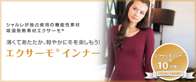 ・シャルレが独占使用の吸湿発熱素材エクサーモ(R)を使用。