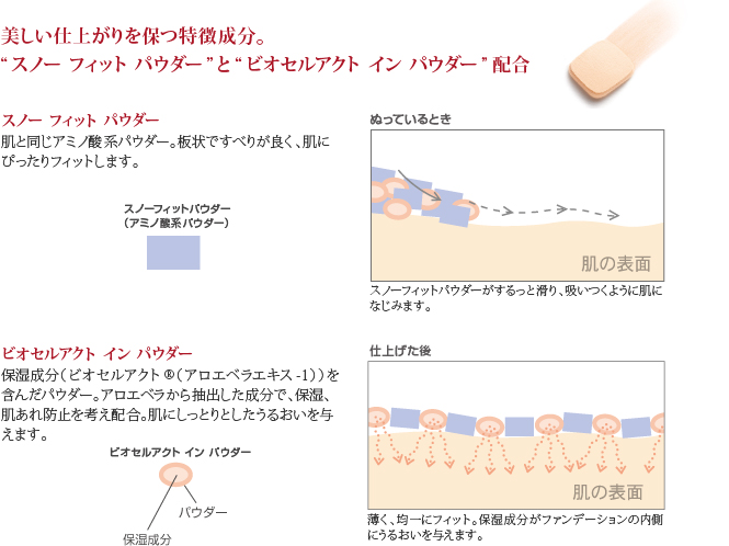 ■美しい仕上がりを保つ特徴成分“スノー フィット パウダー※1”と“ビオセルアクト イン パウダー※2”配合