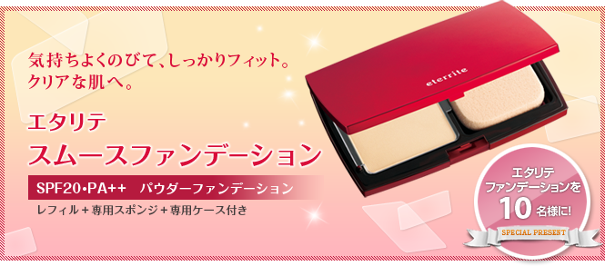「エタリテ スムースファンデーション」は、ひとぬりで手早く簡単に、ムラや粉っぽさのない自然な肌に仕上げられる新感覚のパウダーファンデーションです。