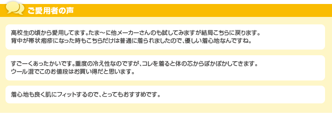 「あったかウール混インナー(長袖)」は、綿にウールをプラスした厚手タイプの秋冬限定インナーです。