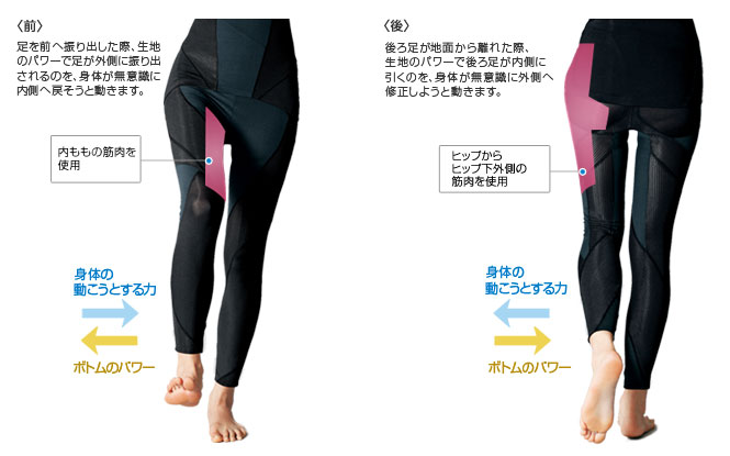 着用して動くことで、日頃使わないヒップ・内ももの筋肉を無意識に動かします。