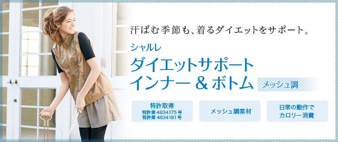 シャルレの新商品「ダイエットサポートインナー(メッシュ調・半袖)」と「ダイエットサポートボトム(メッシュ調・9分丈)」のモニターを募集いたします。