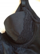 カップトップはアウターにひびきにくいノンレース。また3/4カップでバストを中央に寄せ、カップサイドをすっきり見せる設計です。ワイヤーの肌側はフラットで、優しい肌あたり。
