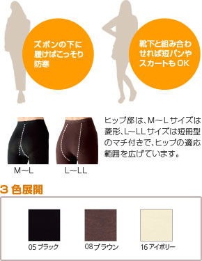 腰・ヒップ・脚を安心の暖かさで包みます。