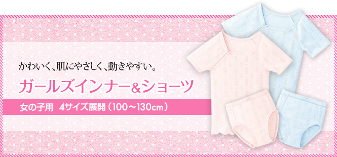 パステルガールズインナー(半袖)&パステルガールズショーツ※販売を終了しました 【価格】インナー(半袖):¥2,592 / ショーツ:¥1,296 【商品のポイント】チューリップの地模様とパステルカラーがかわいい、半袖インナーです。(100〜130cm) おそろいのショーツもどうぞ。 レビュー数 : 6 |