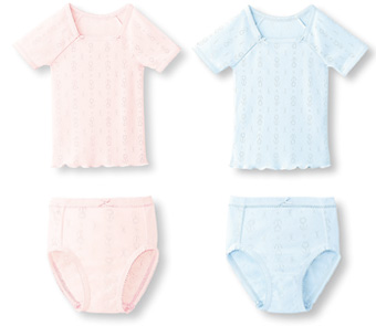 今回は女の子向けに、チューリップの地模様とパステルカラーがかわいい、半袖インナーとショーツのセット(100〜130cm)のモニター10名様を募集します!