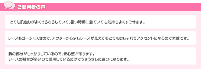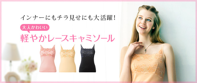 「軽やかレースキャミソール」のモニタープレゼントです。商品をお試しいただき、使用感などをブログにて報告ください。