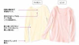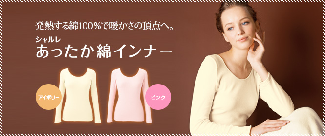 発熱する特殊な綿素材「吸湿発熱コットン」を使って、優しい肌触りと暖かさを叶える画期的なインナーです。