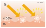 パウダー表面の凹凸が光をさまざまな方向へ反射させ、