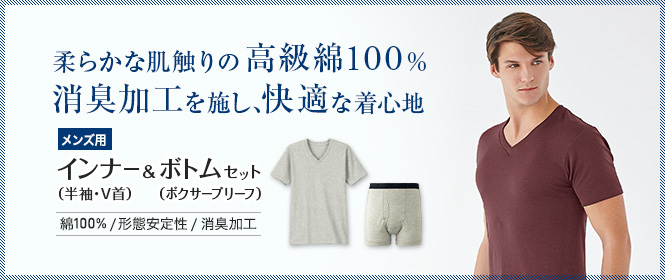 柔らかな肌触りの超長綿100%のシャルレのメンズインナー&ボトムです。