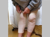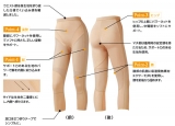 「ひざサポウォーカー(R)」は、歩行時などに外側に開きがちな膝を、内側へと補整する機能設計ボトムです。歩く動作とともに“太もも部の外側から内側へと絞り込むような力”と、“サイドから内側へとおさえる力”が加わる独自の設計構造で、膝にかかる負担を軽減します。