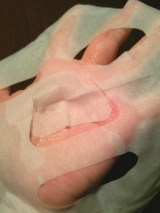 洗顔後、肌を化粧水で整えた後、マスクを目の部分からあてがい、指先で顔全体にフィットさせてください。約10〜15分経ってから、マスクをはがし、肌に残った美容液はやさしくなじませて。その後、乳液などで仕上げます。