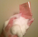 あらかじめ顔をぬらした後、1包分に少量の水を加えてしっかり泡立て、泡でていねいに洗ってすすぎます。