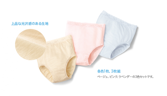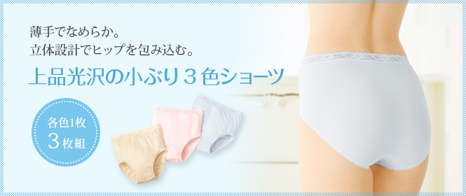 シャルレの「上品光沢の小ぶり3色ショーツ(3枚組/各色1枚入り)」は、薄手でなめらかな肌触り、上品な光沢も魅力の人気のショーツです。