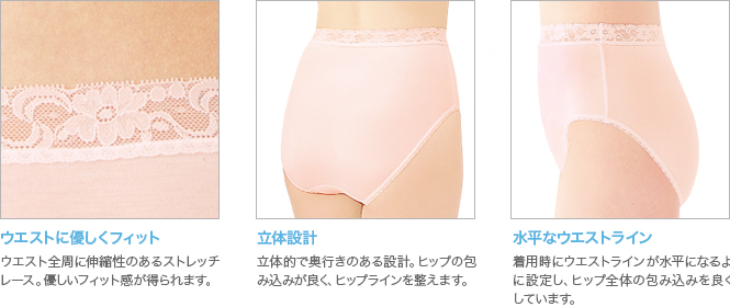 はき込み丈標準。薄くてしなやかな生地は伸縮性が高く、優しくフィットします。