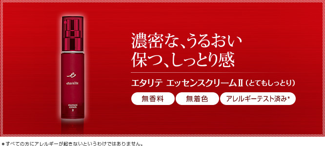 エタリテ エッセンスクリーム2(とてもしっとり)は、うるおいのベールとなって肌をしっかり包み込むクリームです。肌にやわらかくなじんで、長時間しっとり感を保ち、ふっくらと弾力に満ちあふれたツヤのあるしっとりした肌へと導きます。