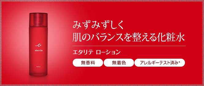 「エタリテ ローション」は、洗顔後の肌のモイスチャーバランス、PHバランスを整える化粧水です。
