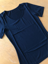 しっとり、なめらかな肌触り。さまざまなアウターに合わせやすいシンプルな半袖タイプです。