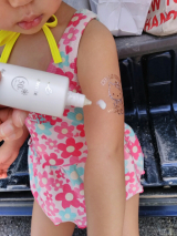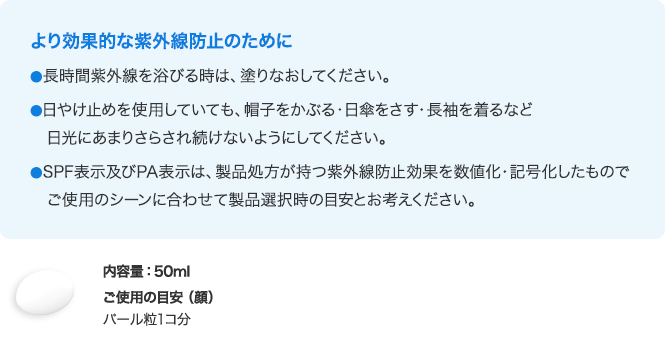<日やけ止め乳液>顏・からだ用」の、