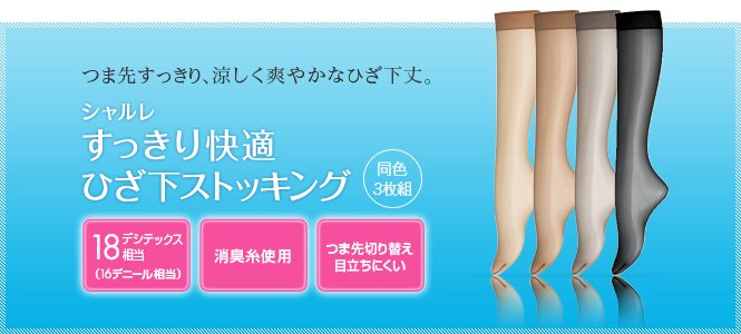 「すっきり快適ひざ下ストッキング(3足組)」をご紹介。