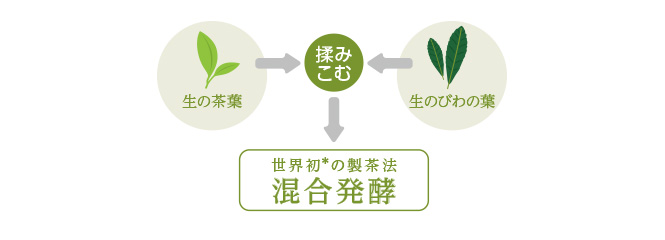 *茶葉とびわの葉を混合発酵させる製法についてをさしています。