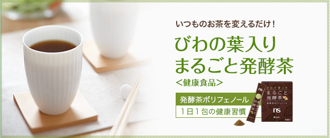 茶葉とびわの葉を混合発酵させ、まるごと粉末状にしているので、食物繊維などの、水やお湯に溶けにくい有用成分までも余すところなく摂取できます。