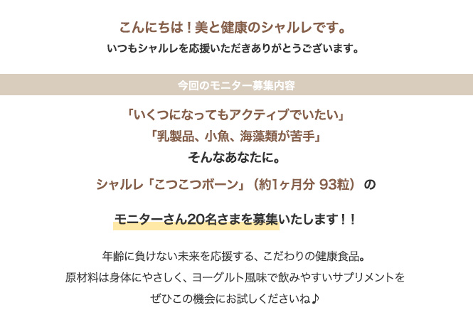 今回はこの『こつこつボーン』のモニターさん20名さまを募集いたします。