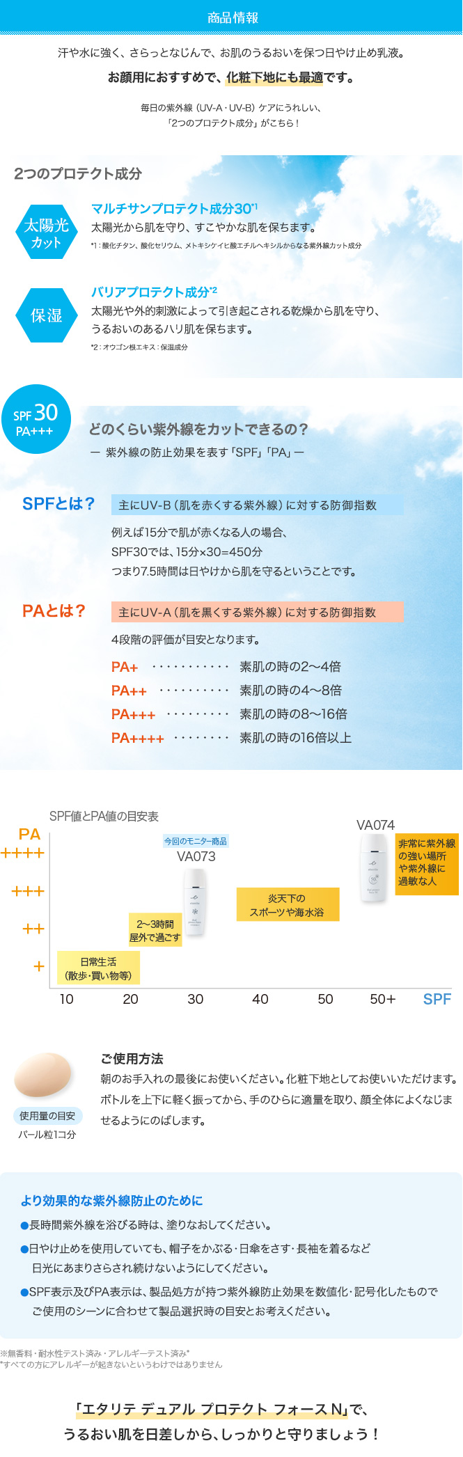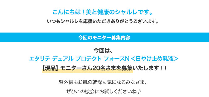 今回は「エタリテ デュアル プロテクト フォースN<日やけ止め乳液>」のモニター20名さまを募集いたします。