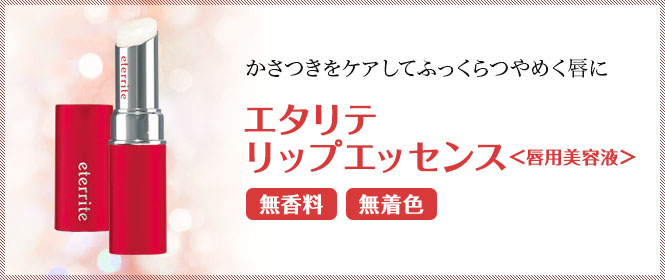 「エタリテ リップエッセンス<唇用美容液>」は、乾燥から守るだけでなく、若々しいハリを与えるコラーゲンに着目した唇用の美容液です。ひとぬりでなめらかに広がり、うるおいを保ちます。