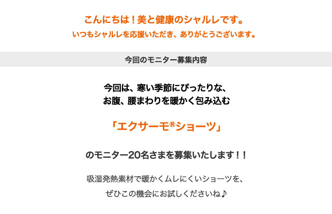 今回はこの吸湿発熱素材「エクサーモ(R)ショーツ」のモニター20名さまを募集いたします。