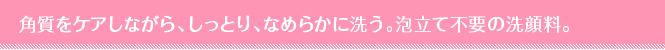成分の約67%が保湿成分でできた、うるおう洗顔料。なめらかで肌すべりがよく、やさしい洗い心地です。
