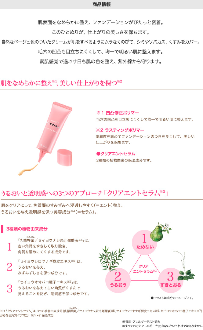 シャルレの「エタリテ フレディアス ブライトアップベース<化粧下地>」は、肌表面をなめらかに整え、ファンデーションの美しい仕上がりを保つ化粧下地です。素肌感覚で過ごす日も肌の色を整え、紫外線から守ります。 レビュー数 : 27 |
