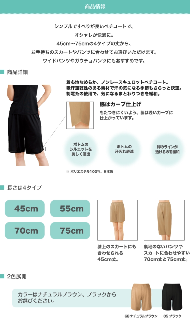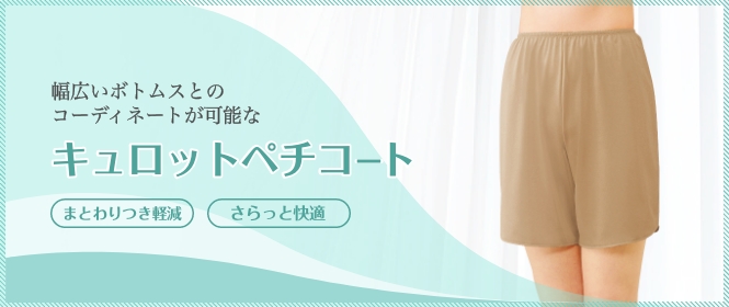 着心地なめらか、ノンレースのキュロットペチコート。